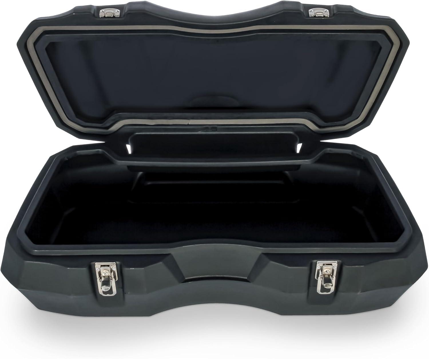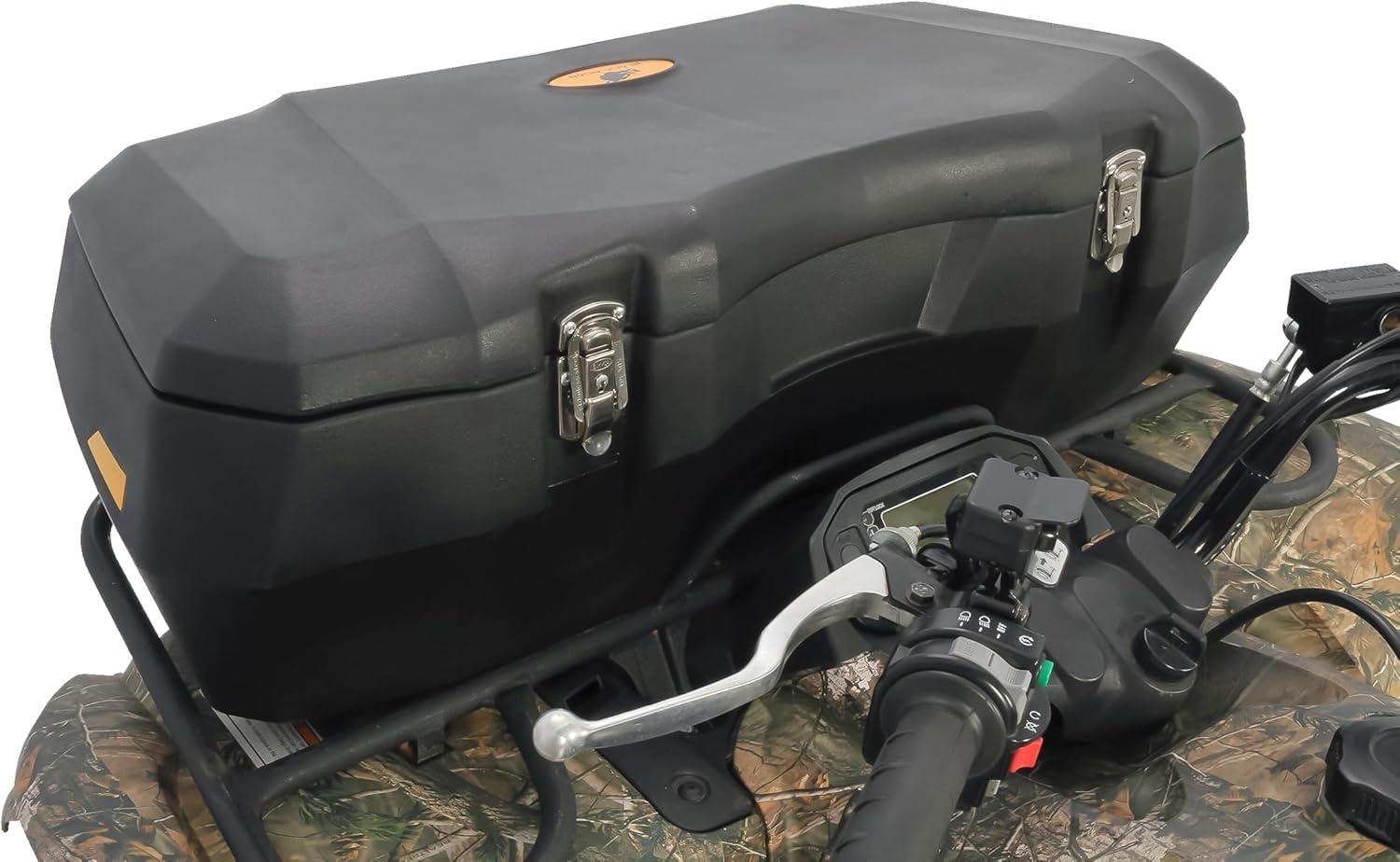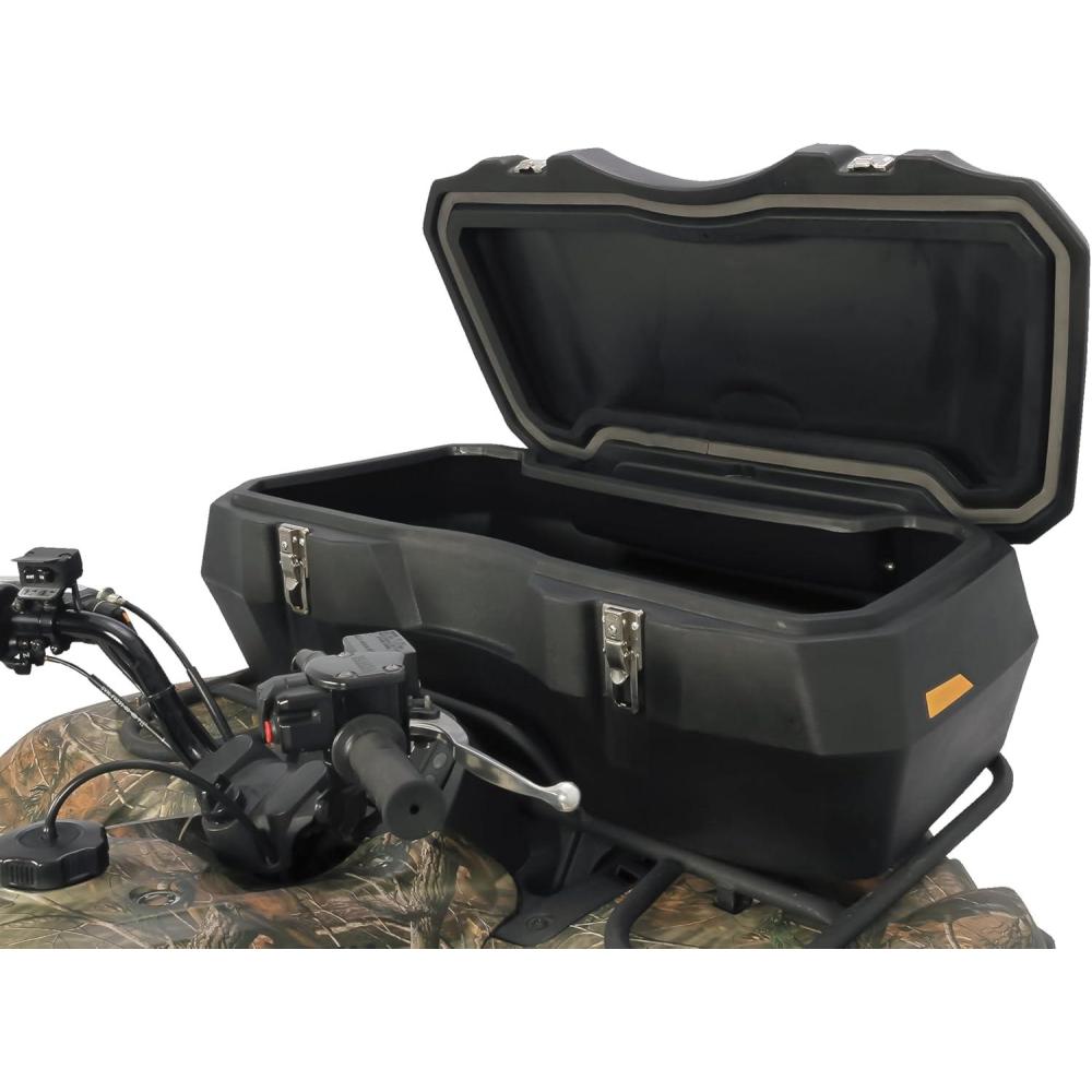 Ample ATV Storage: Store your belongings in (2) spacious ATV cargo boxes, offering ~2 cubic feet of space. The lower bin is lockable, providing 1 ½ cubic feet of sealed storage. An upper bin offers ½ cubic foot of storage that can be reached while seated on your ATV.