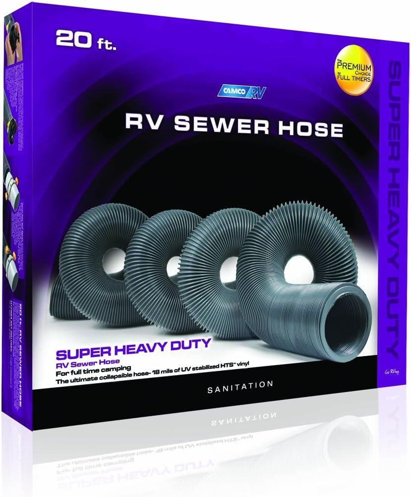 Camco 20-Foot Camper/RV Sewer Hose | Designed to Work with Trailer Sewer Fittings, Threaded Fittings, and Slip Fittings | 3-Inch Diameter Opening (39611)(Gray)