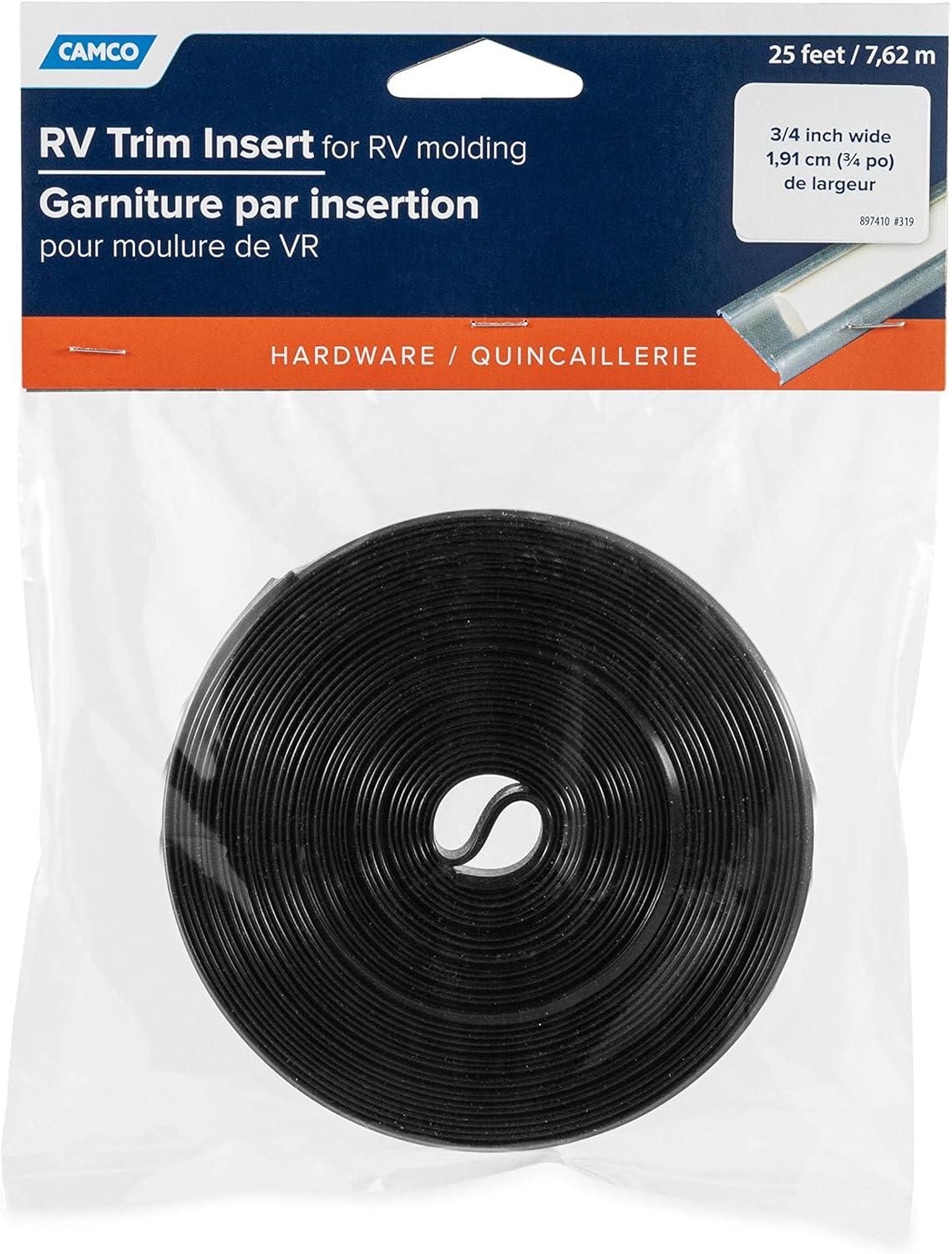 Camco 25143 Vinyl Trim Insert (3/4" x 25', Off-White)(Black)