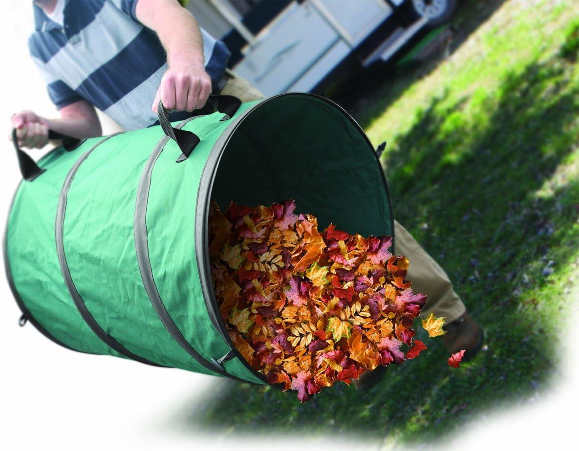 Camco's RV XL Collapsible Container is a great item for using outdoors as a trash can or yard waste container. It measures 22″ by 28″ and collapses down to 2-1/2″ for storage. It fits 39 gallon trash bags. The container has an extra handle at the bottom for easy lifting, padded handles and durable liner and includes toggles for a secure close.