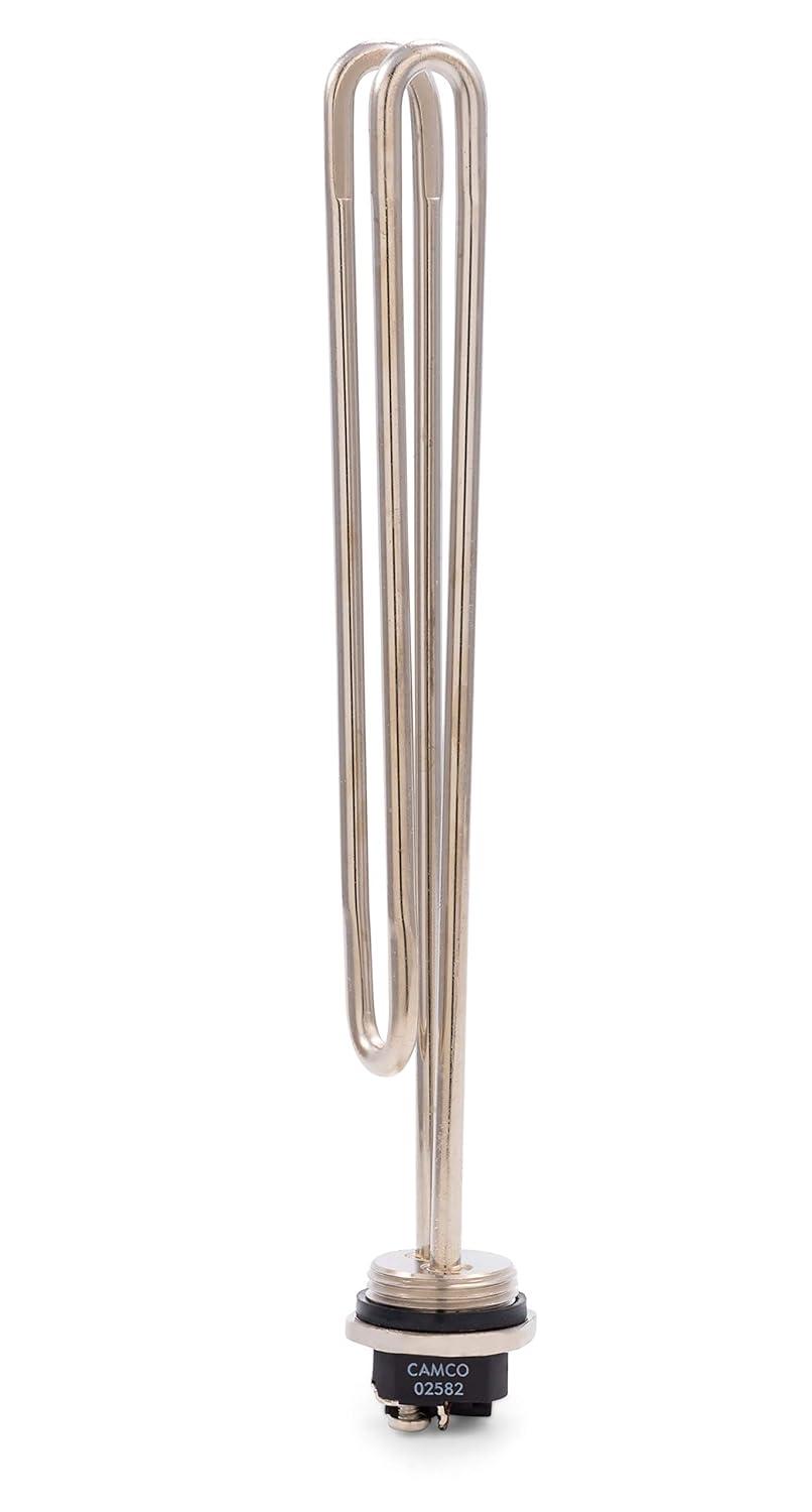 Camco’s Screw-In Foldback, LWD 4500-Watt/240-Volt Water Heater Element can be used in most replacement situations of the same wattage and voltage. This fold back-style low watt density element reduces lime deposit buildup when used in areas with hard water. It features a standard 1-inch NPSM threaded carbon steel bushing, a durable rubber gasket (# 06822), and a fold back-style plated copper tubing. The element fits water heaters with a minimum tank diameter of 13-inches. It is compatible with most models of American, AO Smith, Bradford White, Craftmaster (prior to 1991), GE, GS Wood (certain models), Kenmore, Lochinvar, Maytag, Mor-Flo, Reliance, Rheem, Richmond, Ruud, Sears, State, Whirlpool, and all water heaters manufactured after 1994. You should never exceed the nameplate rating on the water heater. This product is UL listed for US and Canada and includes a 1-year limited warranty.