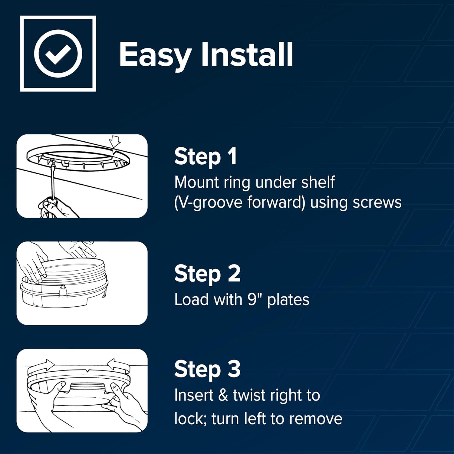 Camco's 9-inch Pop-A-Plate holds and dispenses 9-inch paper plates or 8 ¾ – 9-inch plastic plates. Ideal for compact spaces, it allows you to store all of your disposable plates in one convenient location. Simply mount it under your cabinet or shelf, where it is easy to refill as needed. Includes all mounting hardware. Color: white. Camco makes quality products for RVing, boating, camping, towing, tailgating, and grilling that help you take your passion for the outdoors to the next level.