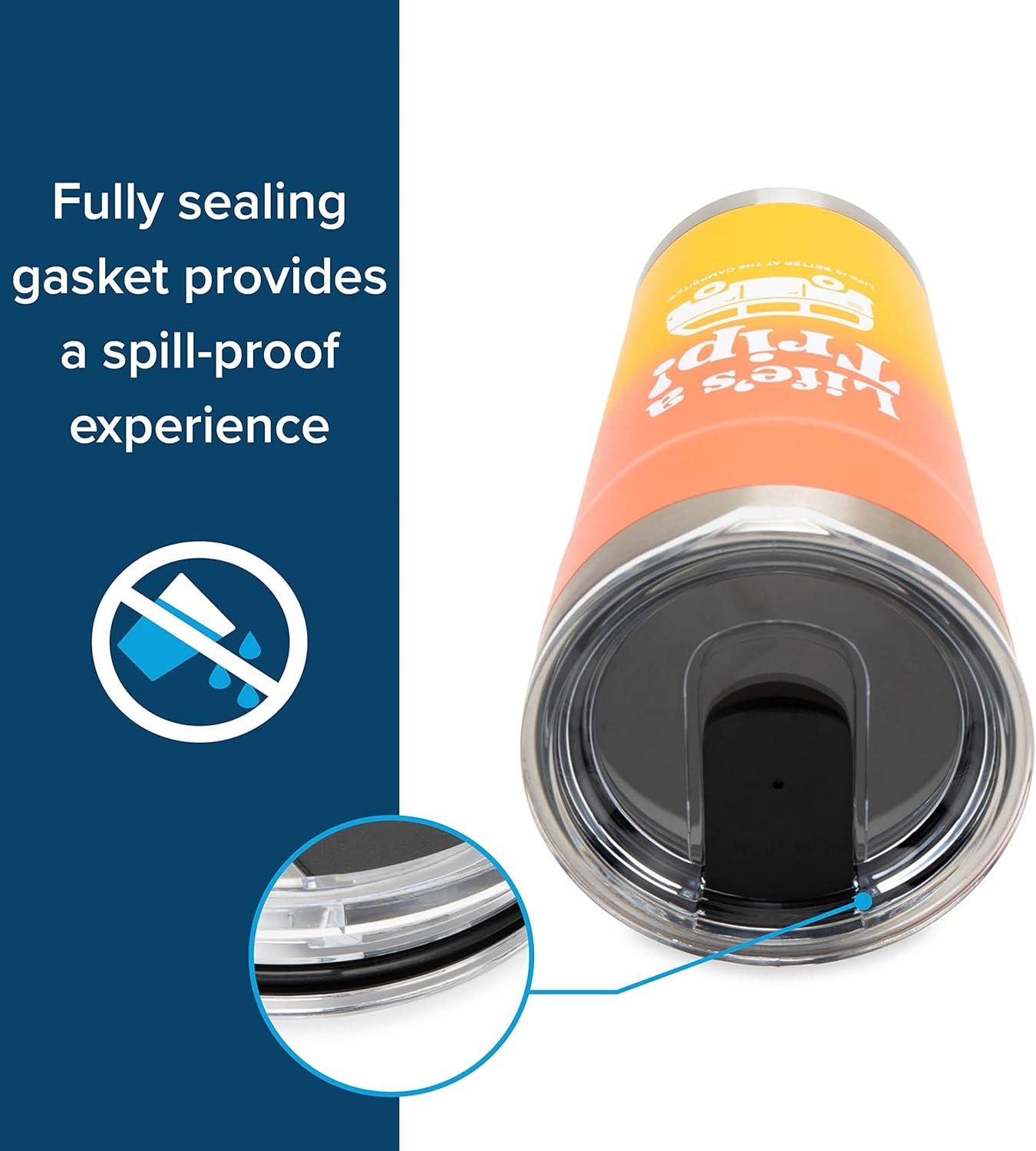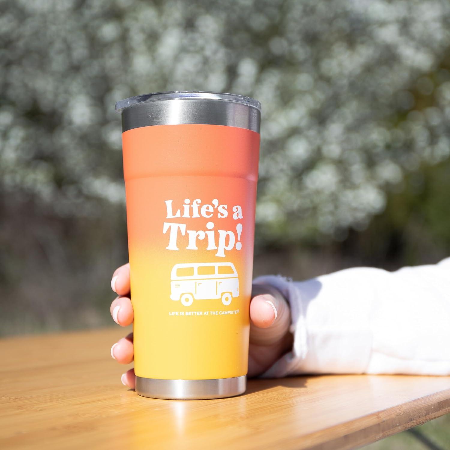 Camco’s Life is Better at the Campsite Painted Tumblers offer superior heat and ice retention. They are constructed of durable, kitchen-grade 18/8 stainless steel and come with a lid (does not contain BPA). The double wall vacuum insulation and built-in gasket help stop heat transfer, meaning your ice stays solid longer and your cup won’t sweat. These 20 oz. tumblers fit in most cup holders. Color: gradient orange/yellow. Camco makes quality products for RVing, boating, camping, towing, tailgating, and grilling that help you take your passion for the outdoors to the next level.