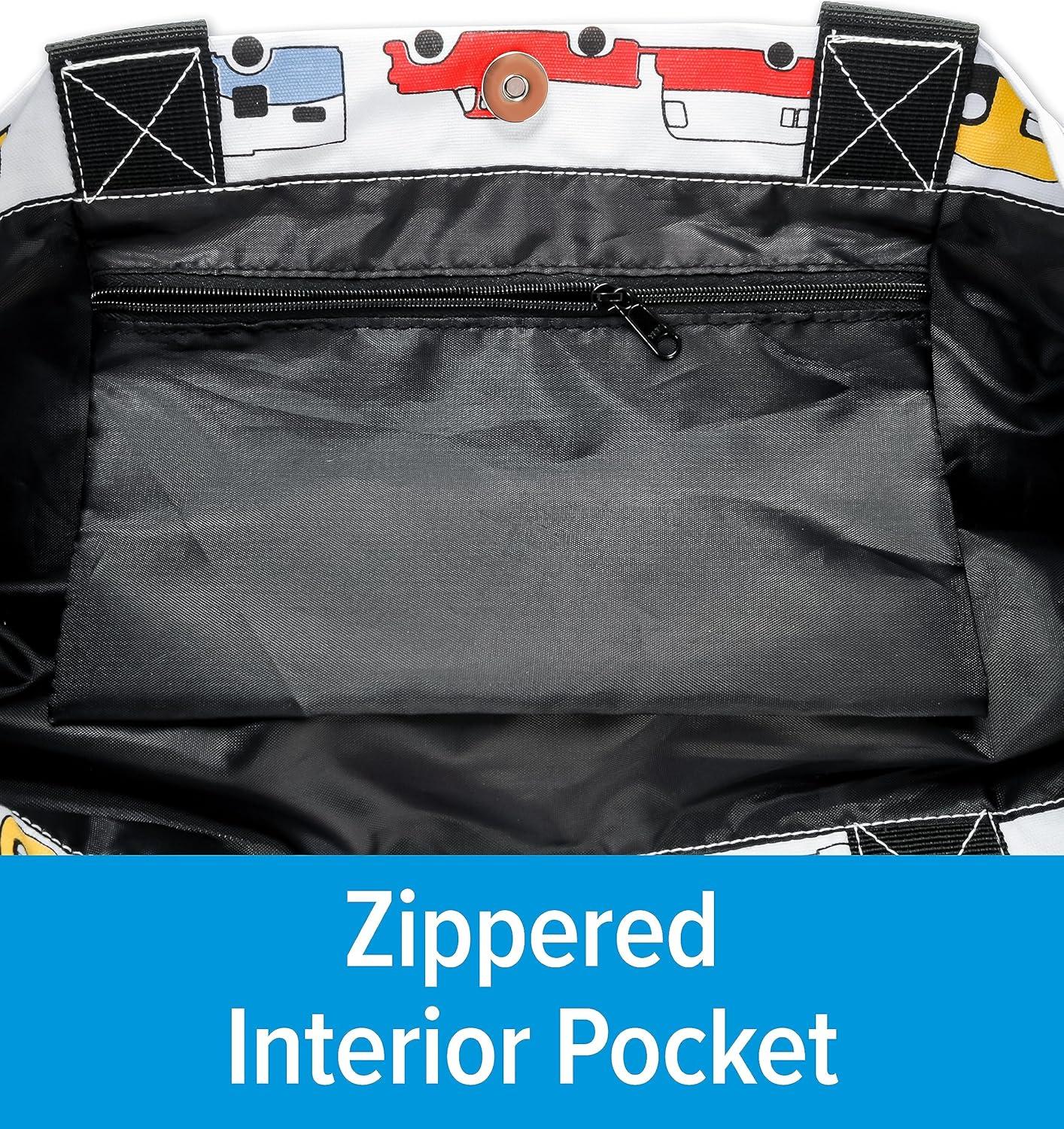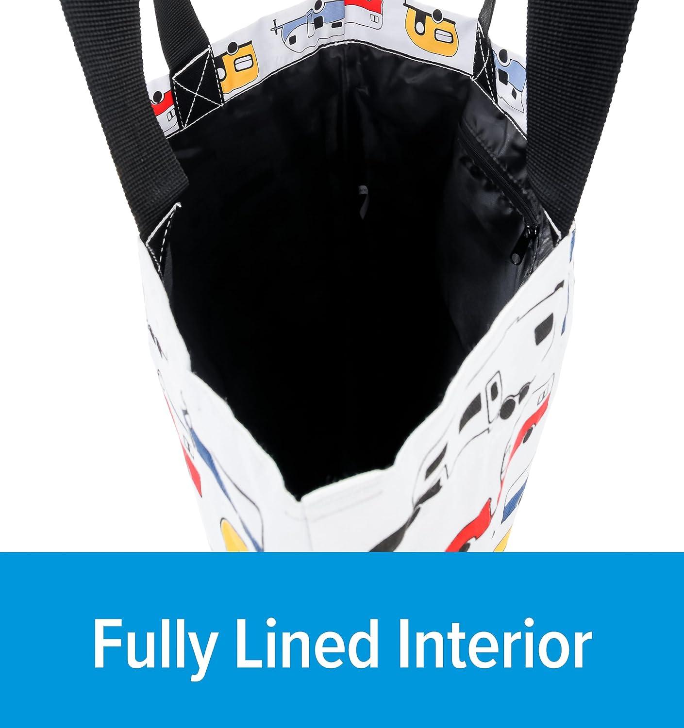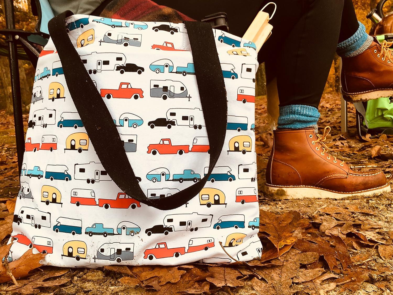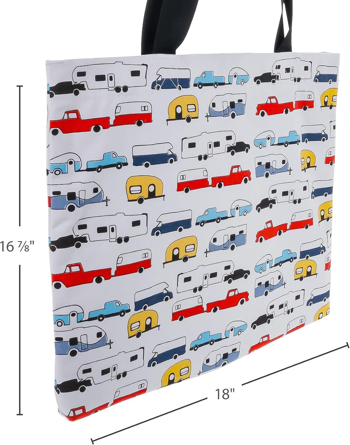 Camco Life is Better at The Campsite Canvas Tote Magnetic Closure(White With Retro Rv Print)