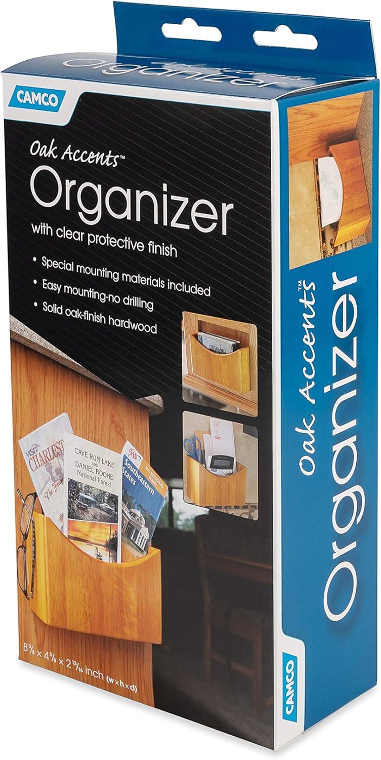 Camco RV Oak Accents Organizer organizes papers, remote controls, mail, maps or anything you need to keep neat and at hand. Mounts easily on almost any surface. Solid oak-finish hardwood. (8-3/8″ x 4-5/8″ x 2-13/16″).