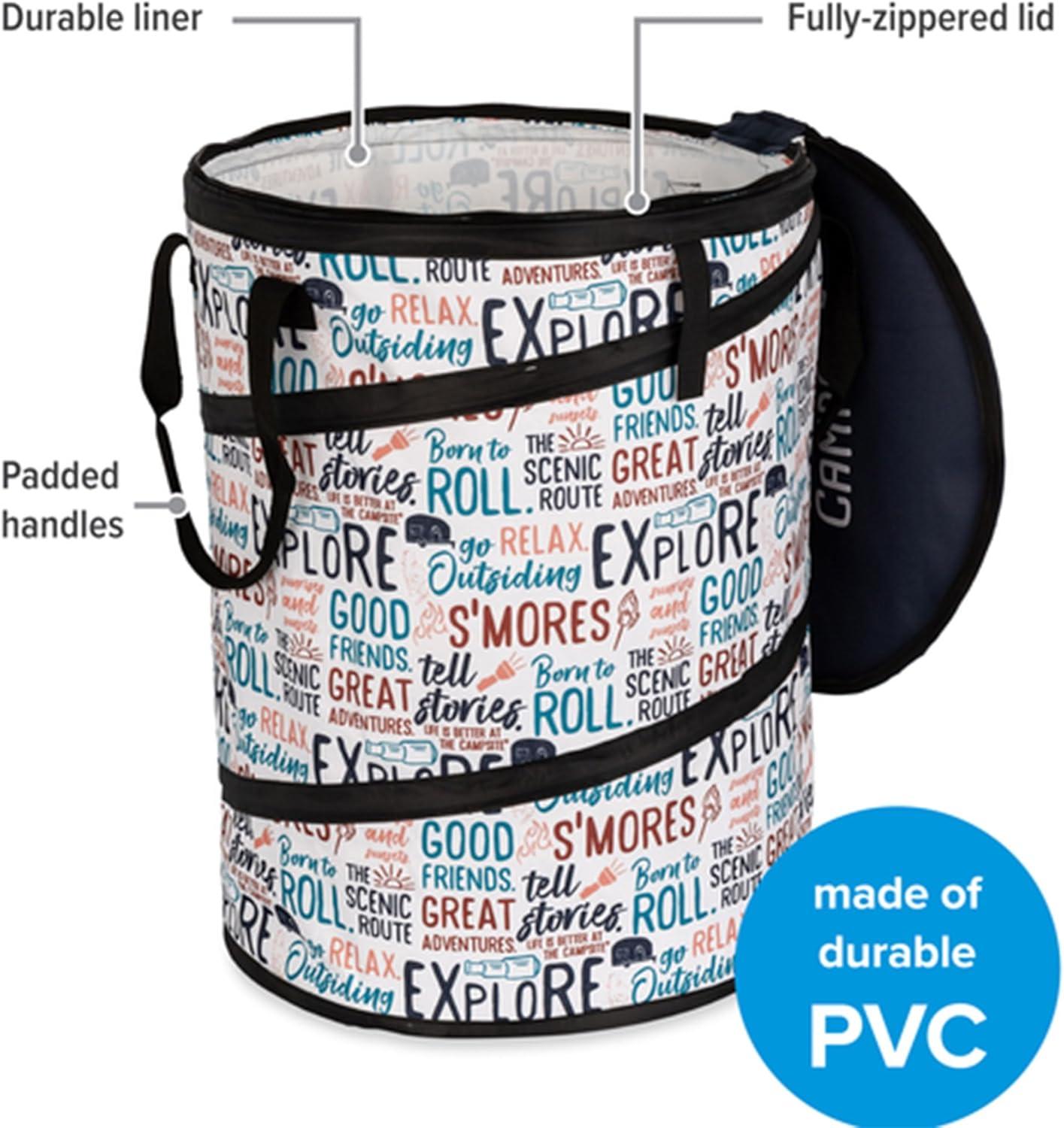 EXPLORE NATURE WITHOUT CLUTTER: Explore the outdoors without having to worry about messy items or trash! Camco's Pop-Up Container works great as an outdoor garbage can, pop up laundry basket, RV trash can, boat trash can, or yard waste container