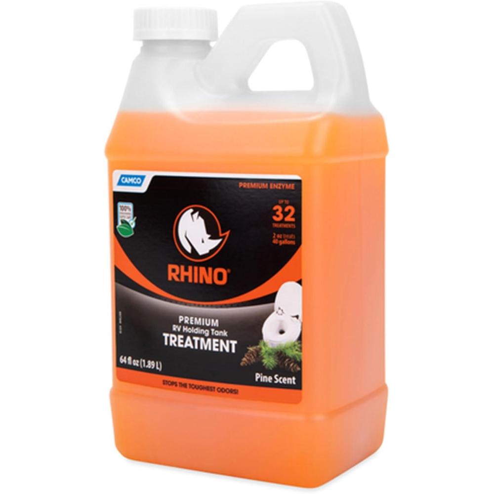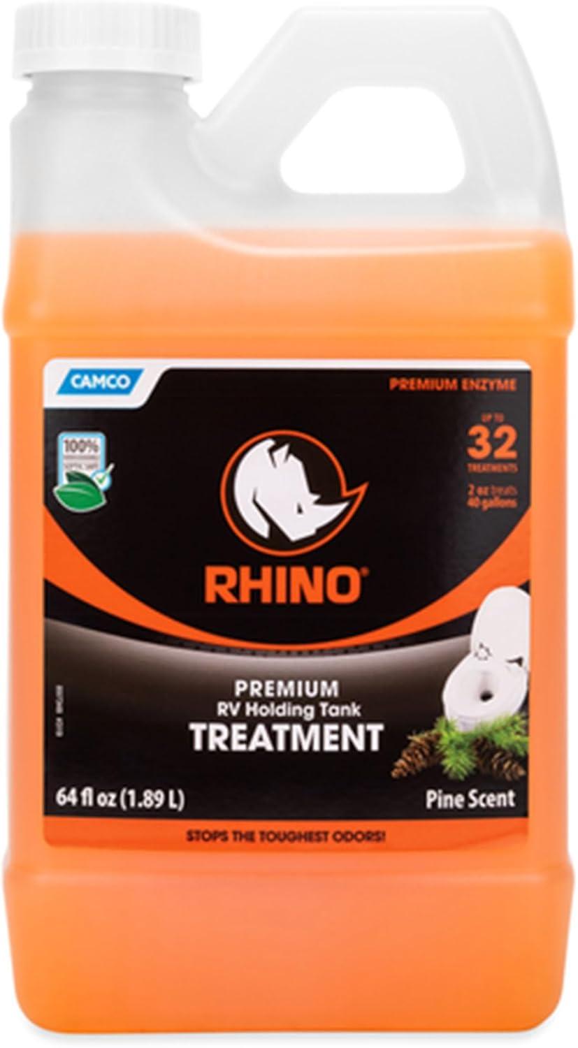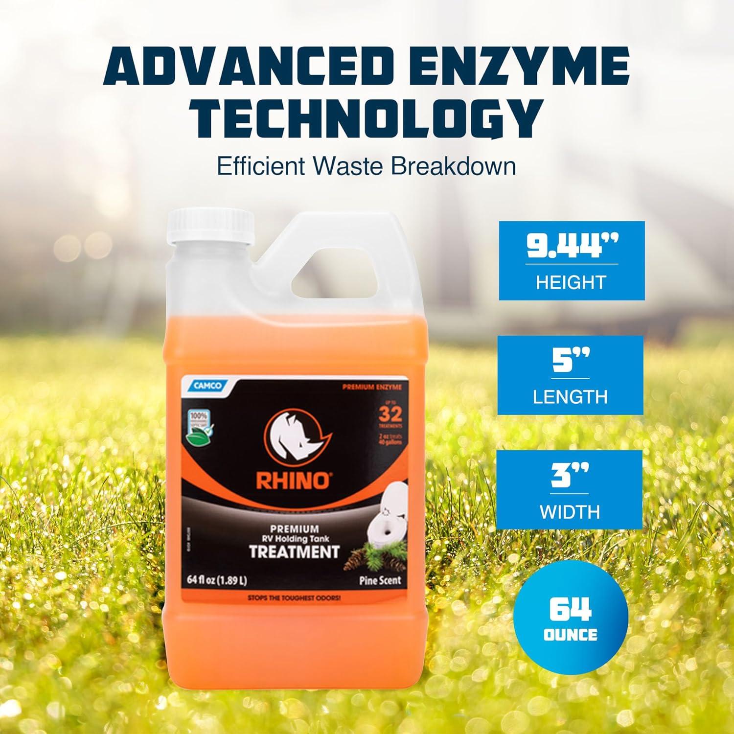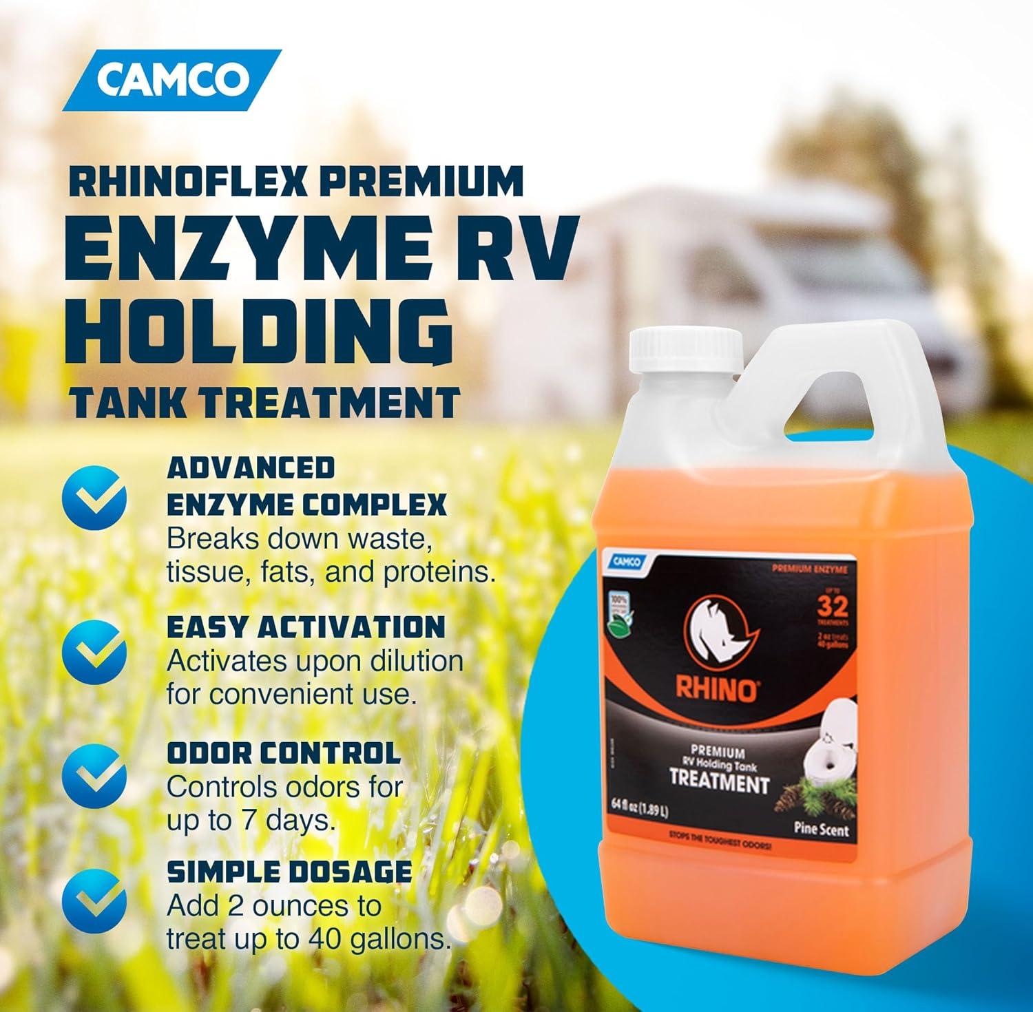 Camco RhinoFLEX Premium Enzyme RV Holding Tank Treatment | Features a Biodegradable Septic Safe Formula, a Pine Scent, and is Ideal for RVing, Boating, and More | 16 oz (41512)(64 Fl Oz (Pack of 1))