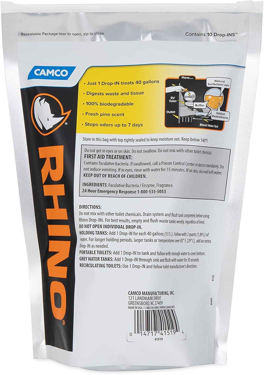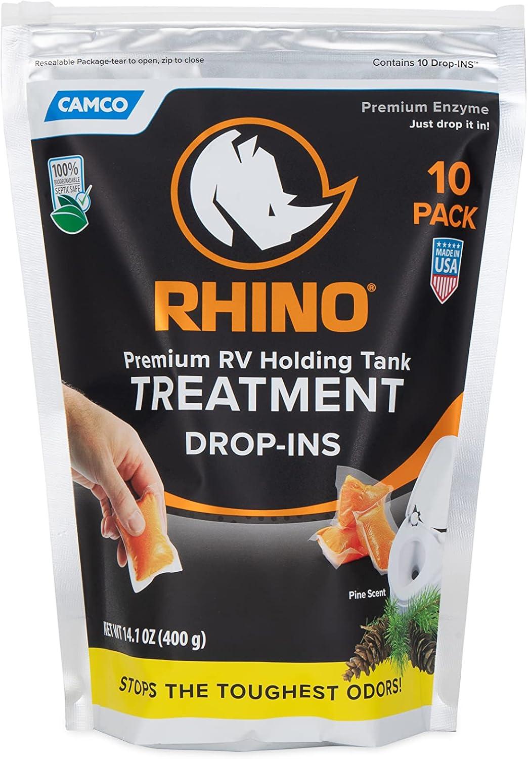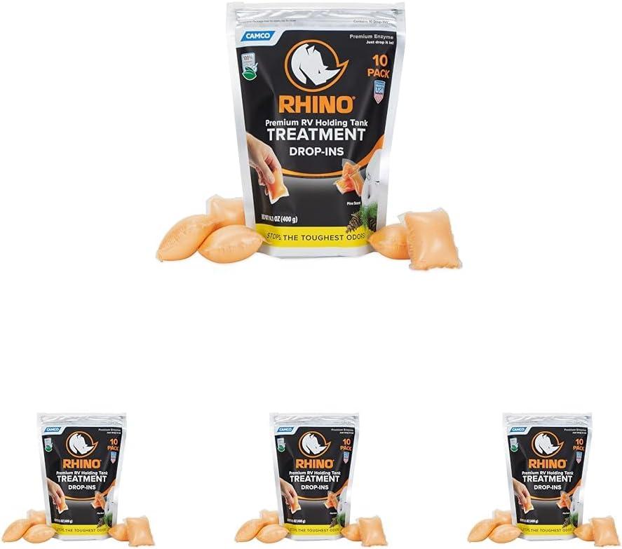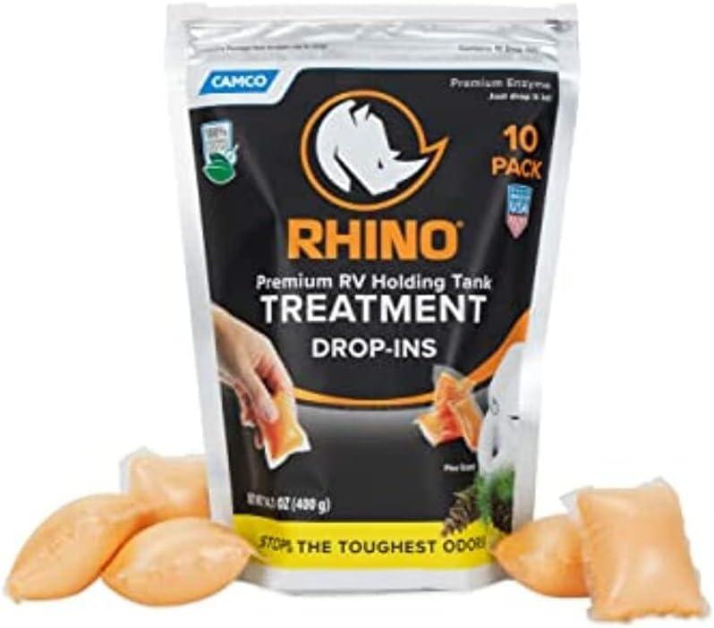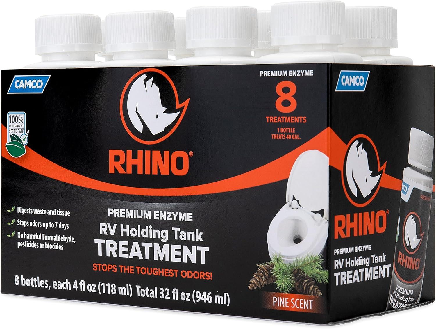 imageCamco RhinoFLEX Premium Enzyme RV Holding Tank Treatment Singles  Features a Biodegradable Septic Safe Formula a Pine Scent and is Ideal for RVing Boating and More  8 4 oz Bottles 41511Unscented