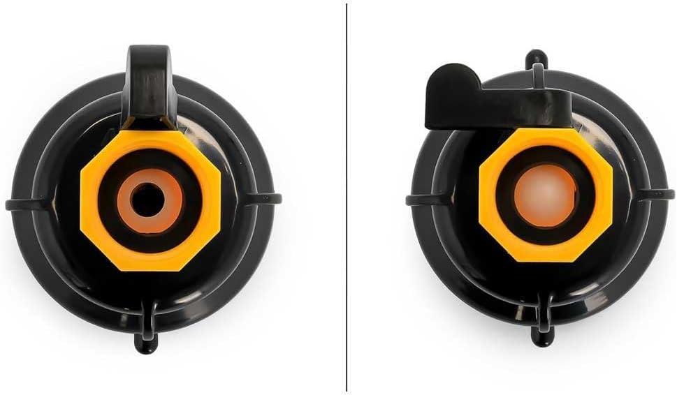 Firmly locks onto the RV sewer hose bayonet fitting and connects to a garden hose