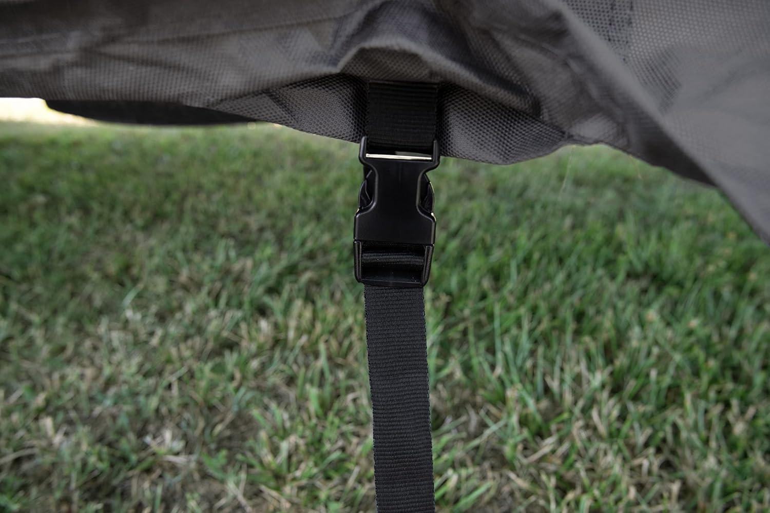 Sun, rain, sleet and snow can damage your RV’s exterior. Protect your investment with Camco’s ULTRAGuard Supreme RV Cover. The cover fits toy hauler trailers 24-foot to 28-foot. The cover’s sides, front and back are made of three-layer non-woven polypropylene, while the top is a three-layer material made of non-woven polypropylene and DuPont Tyvek. Not only are these materials extremely durable, they are also breathable and help protect against the elements. The cover’s hems and seams are lock-stitched and the corners and other high-wear areas are reinforced to withstand frequent use. Zipper entry doors provide easy access during covered storage. Covered air vents help stop trapped moisture and billowing in high winds; they also keep the unit cooler. To cover your RV properly, the front and rear cinching straps reduce loose fabric and an underbelly strap system provides a fastened fit.