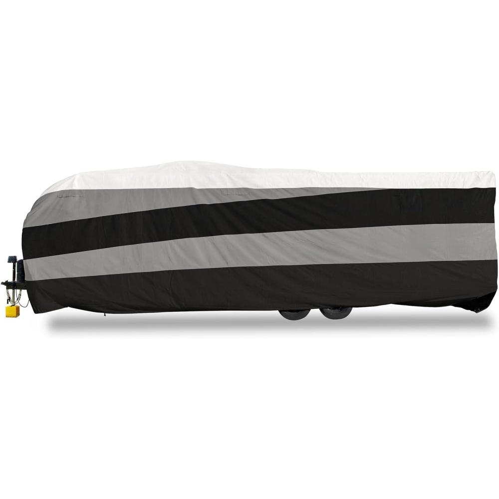 Full Protection from the Elements: Made with two-layer non-woven polymer on the sides, front, and back, and a three-layer DuPont Tyvek top, this RV cover shields your camper from sun, rain, snow, and sleet for lasting protection.
